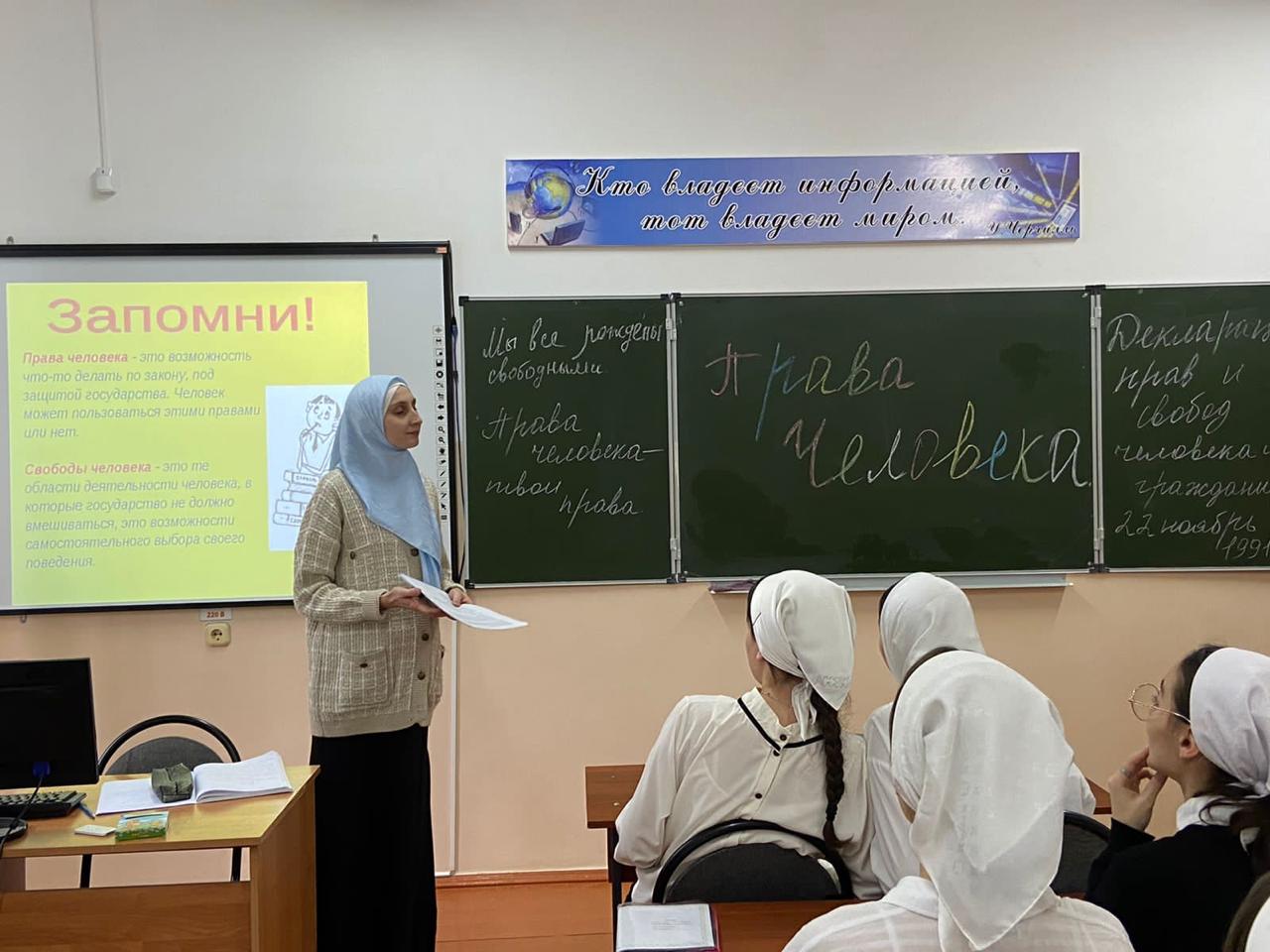 05.12.2022В рамках празднования Международного дня прав человека в МБОУ "СОШ с.Керла-Юрт Грозненского муниципального района" ЧР 5 декабря провели Всероссийский единый урок "Права человека". Цели проведенных мероприятий формирование правовой культуры молодых граждан нашей страны, продвижения идей Всеобщей декларации прав человека и Конституции Российской Федерации.