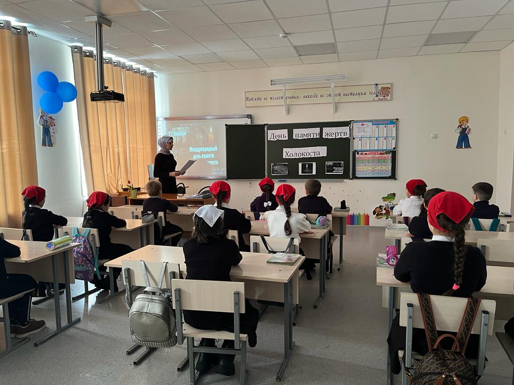 26.01.2024Ежегодно 27 января отмечается Международный день памяти жертв Холокоста. Резолюция об этом была принята Генеральной Ассамблей Организации Объединенных Наций 1 ноября 2005 года. Дата памятного дня выбрана не случайно. 27 января 1945 года Советская армия освободила крупнейший нацистский лагерь смерти Освенцим, в котором погибли, по разным оценкам, от 1,5 до 4 миллионов человек. Точное количество погибших в Освенциме так и не удалось установить. Для обеспечения исторической истины о событиях Второй мировой войны, решающей роли стран антигитлеровской коалиции в победе над фашизмом, а также сохранения памяти об ужасах Холокоста, с 2005 года проводится серия мероприятий высокого уровня под названием «Всемирный форум памяти Холокоста». Международный день памяти жертв Холокоста является свидетельством уважения к тем, кто выжил и данью памяти жертвам Холокоста. В связи с данной знаменательной датой, в МБОУ «СОШ с. Керла-Юрт» советником по воспитанию и взаимодействию с детскими общественными объединениями, Саламовой Заиры Салаудиевной, было проведено мероприятие просмотром киноурока «Страна игрушек» с учениками 9-11 классов.