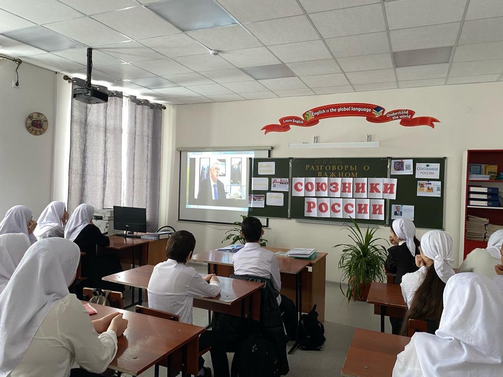 29.01.2024"Союзники России» тема занятия, которое прошло 29 января в рамках мероприятий «Разговоры о важном» .Сегодняшний разговор посвящён важным составляющим нашей жизни – умениям находить общий язык, взаимодействовать, при этом учитывая свои интересы как в обыденной жизни, так и в отношениях между государствами- союзничеству.Ученики прослушали интервью Торкунова Анатолия Васильевича, российского дипломата и политолога, руководителя Московского государственного института международных отношений, он рассказал о важном союзном соглашении, о коллективной безопасности – СНГ (Содружество Независимых Государств), куда входит Россия, Азербайджан, Армения, Беларусь, Казахстан, Киргизия, Молдавия, Таджикистан, Туркменистан, Узбекистан, Украина.Именно взаимная поддержка помогает государствам повышать уровень жизни своих граждан, развивать торговлю и экономику, обмениваться знаниями и опытом в различных сферах жизни общества. Россия успешно развивает контакты с широким кругом иностранных государств.
