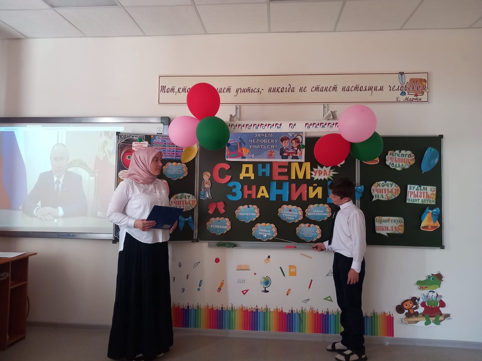 01.09.20251 сентября 2025 года во всех классах МБОУ "СОШ с.Керла-Юрт" прошли внеурочные занятия проекта «Разговоры о важном» на тему:«Зачем человеку учиться?».